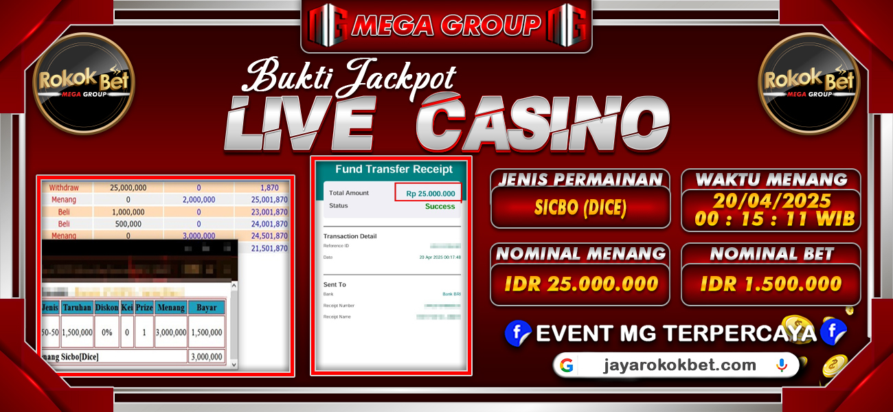 Jackpot Okewla, Game Live Casino - Mega Roulette, Rp 8,500,032 LUNAS
